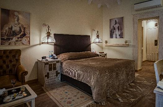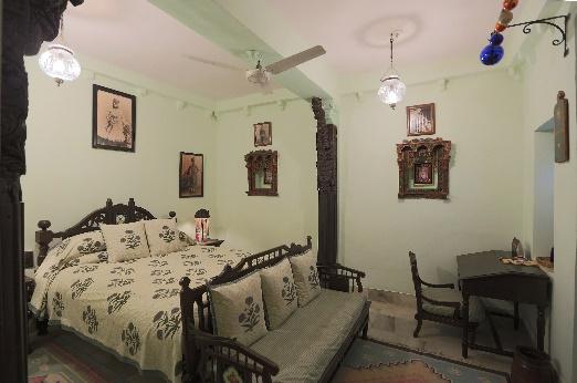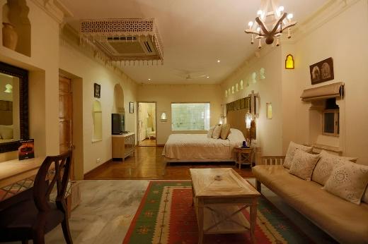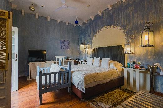 Ajit Bhawan's Vintage Rooms are thoughtfully adorned and tastefully furnished. With pastel, stonewashed walls, vintage-looking furniture, and bedside lanterns, these rooms envelop you in a sense of warmth and coziness.