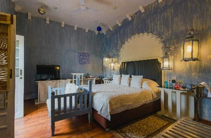 Ajit Bhawan's Vintage Rooms are thoughtfully adorned and tastefully furnished. With pastel, stonewashed walls, vintage-looking furniture, and bedside lanterns, these rooms envelop you in a sense of warmth and coziness.